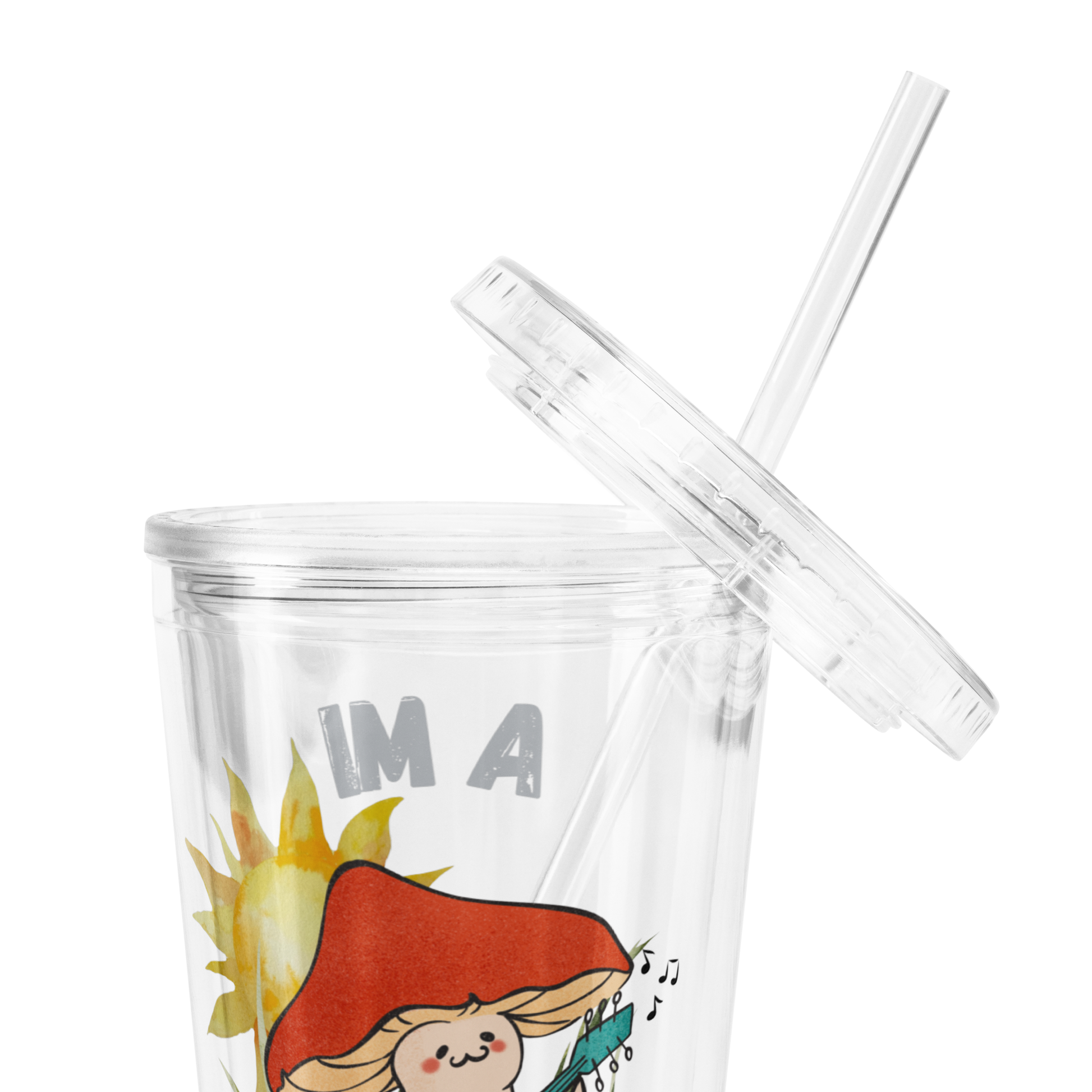 Comes with a plastic straw and screw-on lid